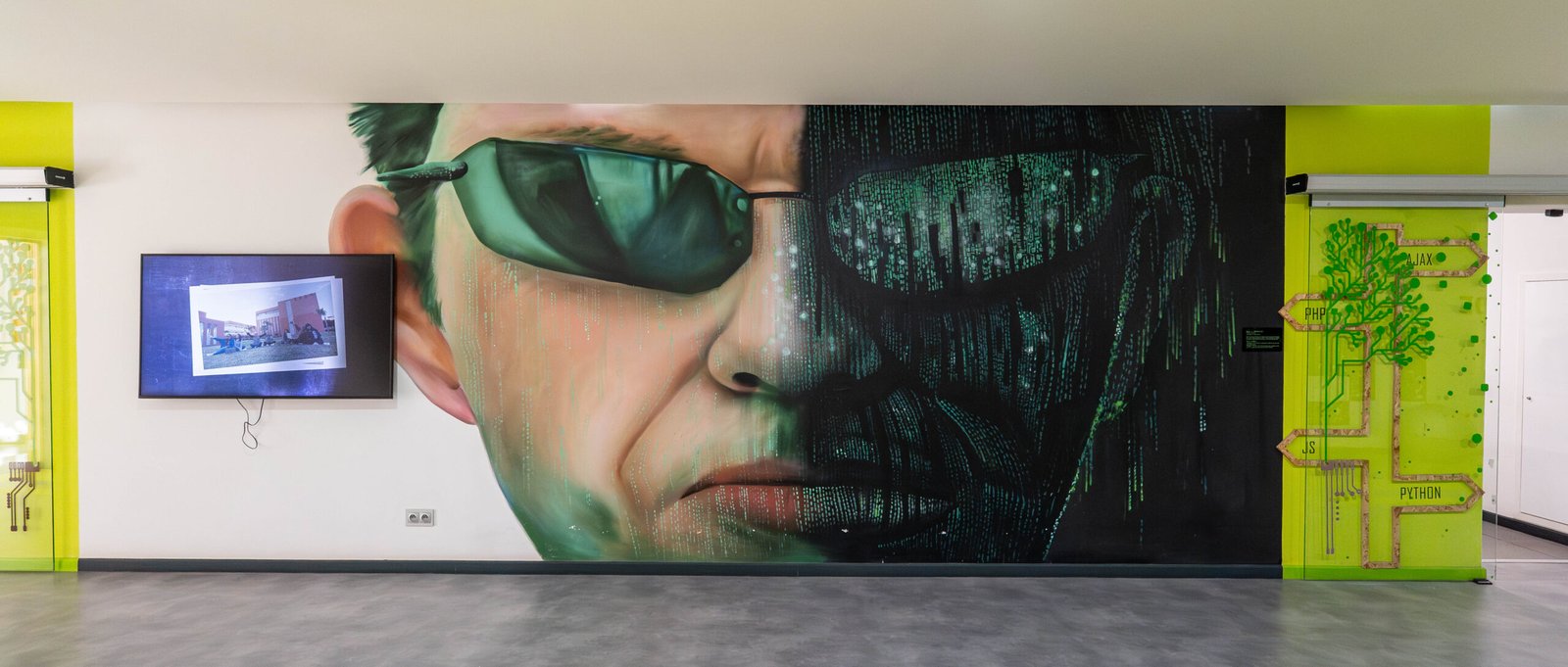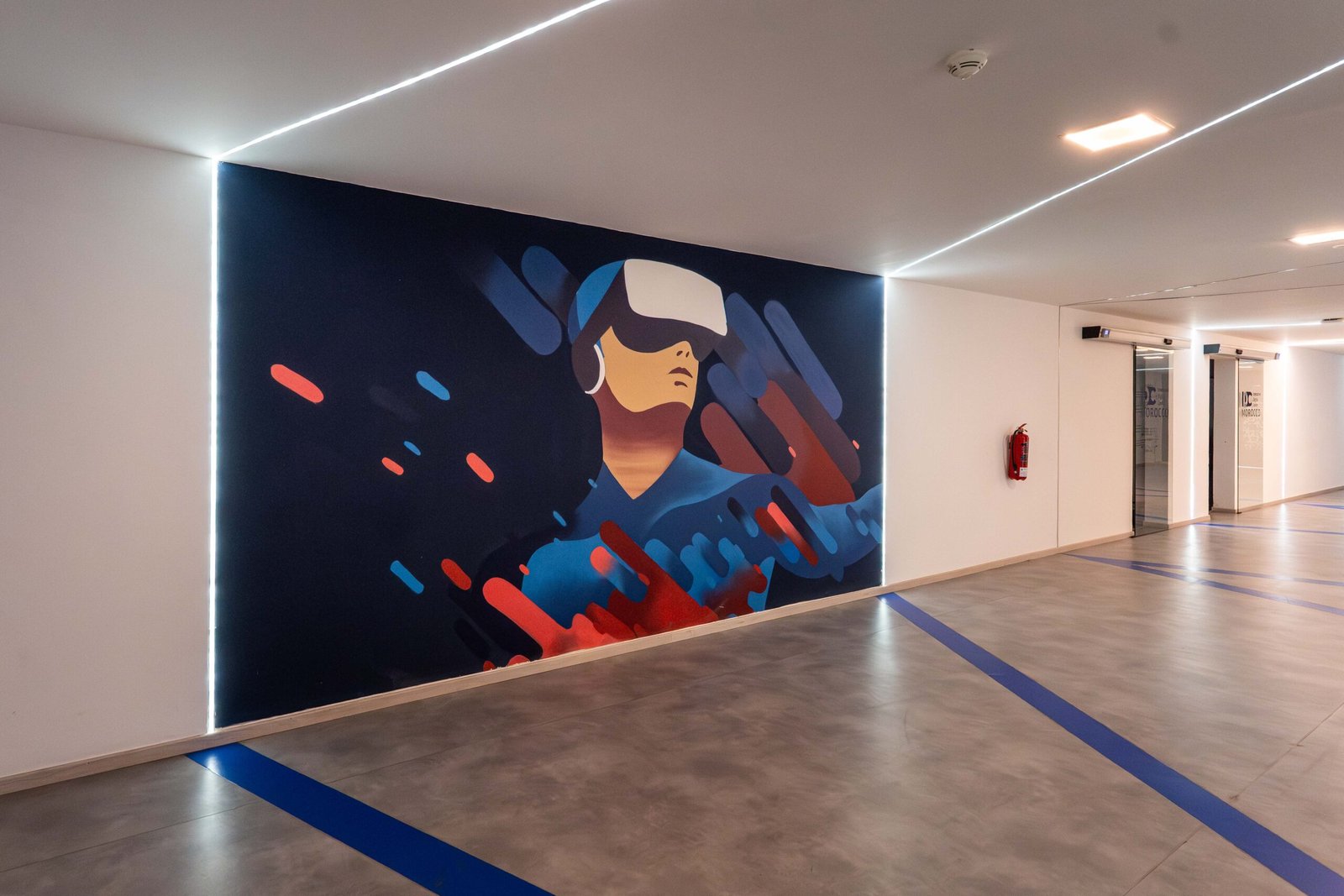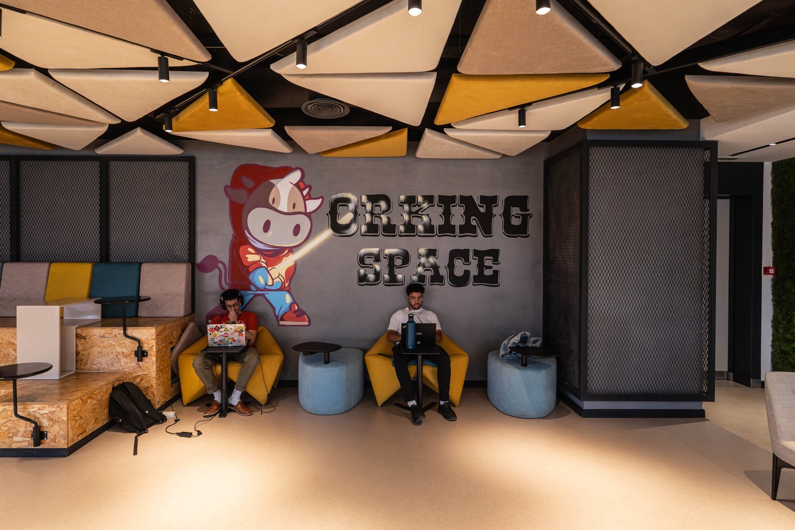 En 2019, Placebo Studio est sollicité une seconde fois par le Groupe OCP pour une mission ambitieuse : repenser intégralement l’univers artistique de la nouvelle école 1337 à Benguérir, un an après le succès de celle de Khouribga. Ce projet n’est pas qu’une simple décoration. C’est une immersion visuelle pensée dans les moindres détails, portée par une vision forte et un objectif clair : faire de cette école un symbole national de la culture tech et de l’innovation pédagogique.
