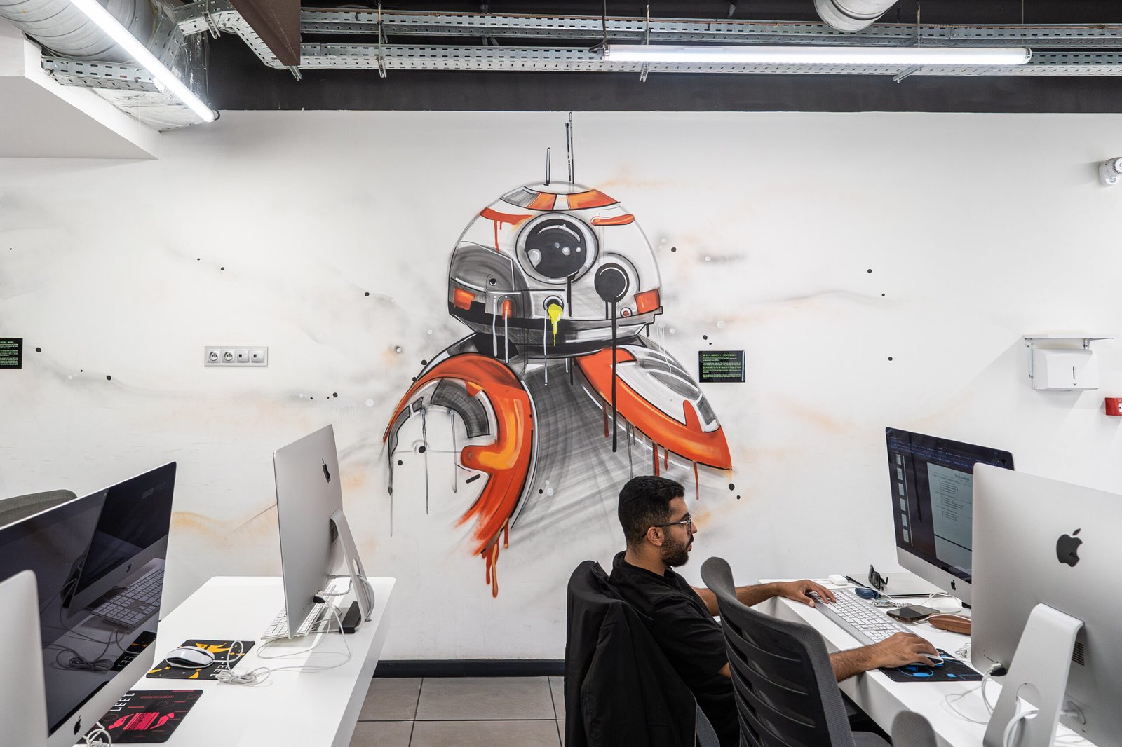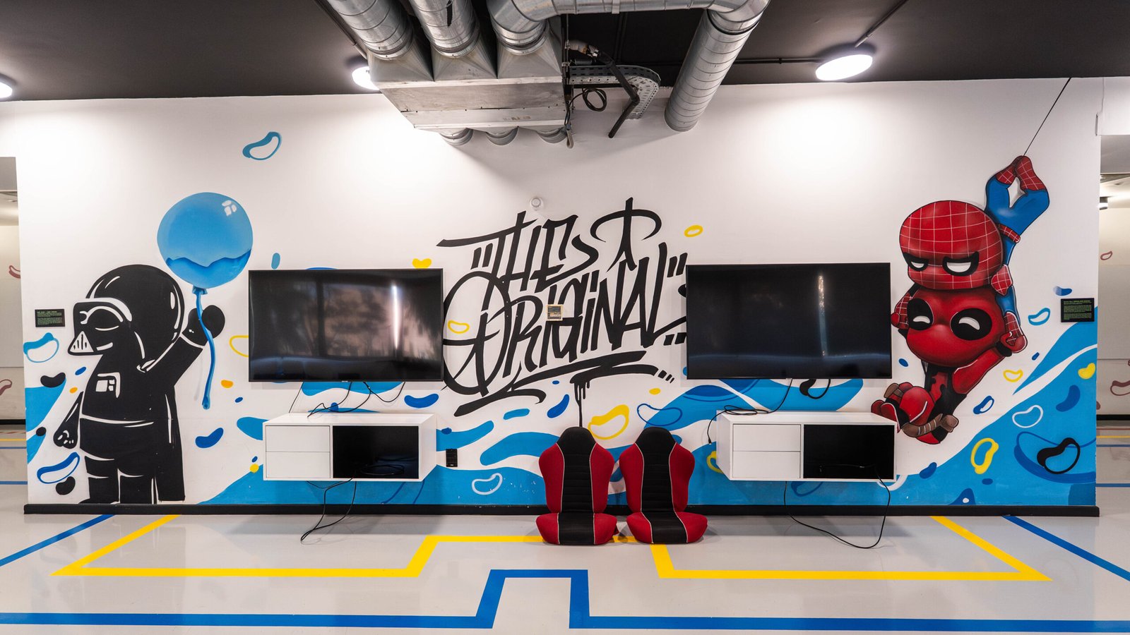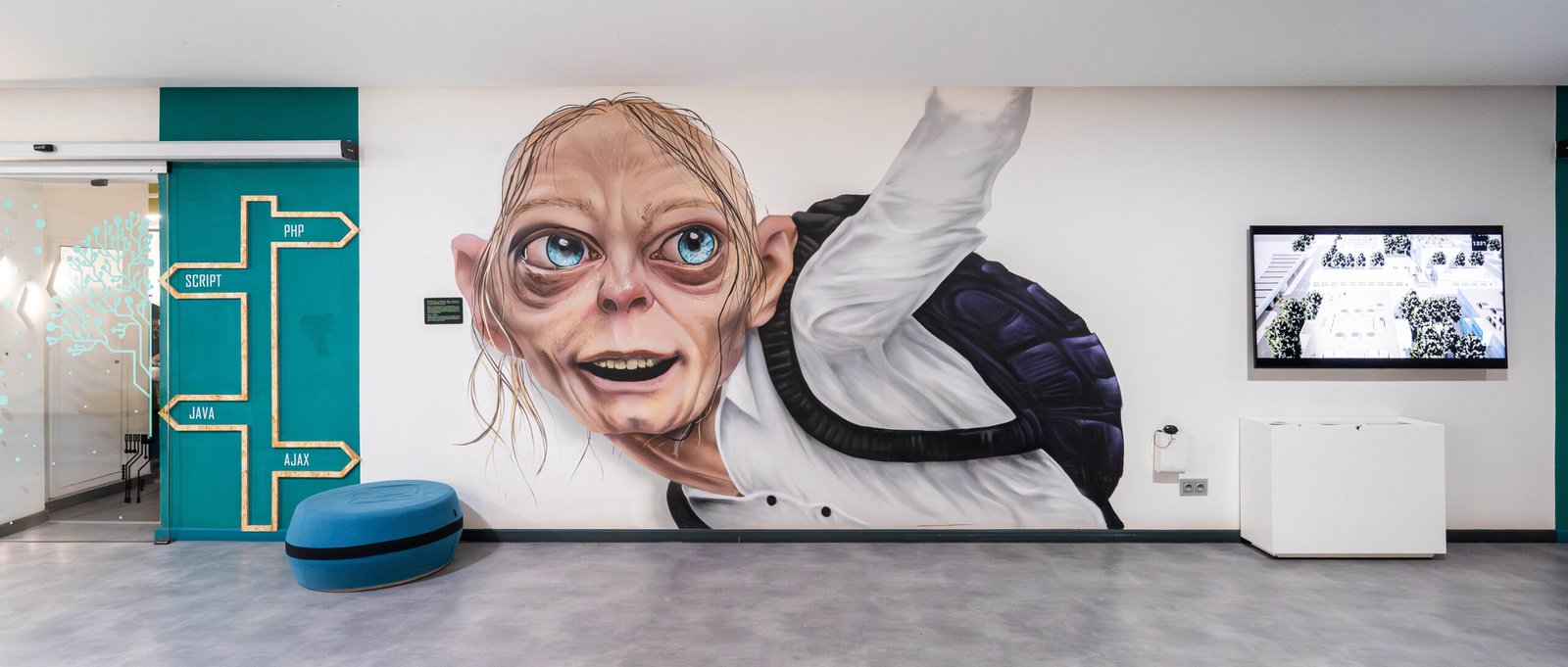 En 2019, Placebo Studio est sollicité une seconde fois par le Groupe OCP pour une mission ambitieuse : repenser intégralement l’univers artistique de la nouvelle école 1337 à Benguérir, un an après le succès de celle de Khouribga. Ce projet n’est pas qu’une simple décoration. C’est une immersion visuelle pensée dans les moindres détails, portée par une vision forte et un objectif clair : faire de cette école un symbole national de la culture tech et de l’innovation pédagogique.