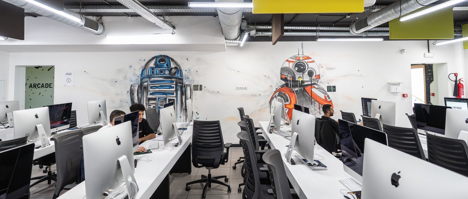 Créer un environnement stimulant, non académique, dans l’esprit startup de la Silicon Valley, où les références geek, gaming, cinématographiques et technologiques se croisent et s’intègrent harmonieusement à l’architecture.
