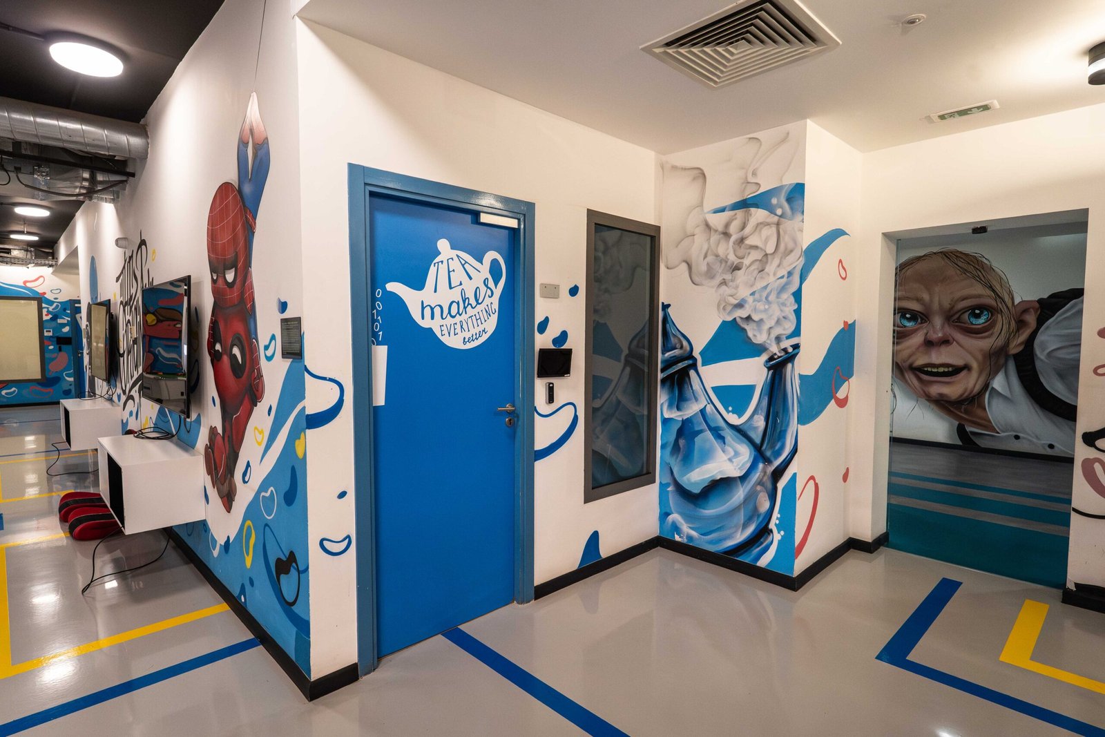 Pour un projet d’une telle envergure, Placebo Studio a réuni une équipe de huit artistes aux talents complémentaires. La coordination a été assurée avec rigueur pour que chaque œuvre, chaque mur, s’inscrive dans une vision artistique cohérente tout en laissant place à l’expression individuelle.