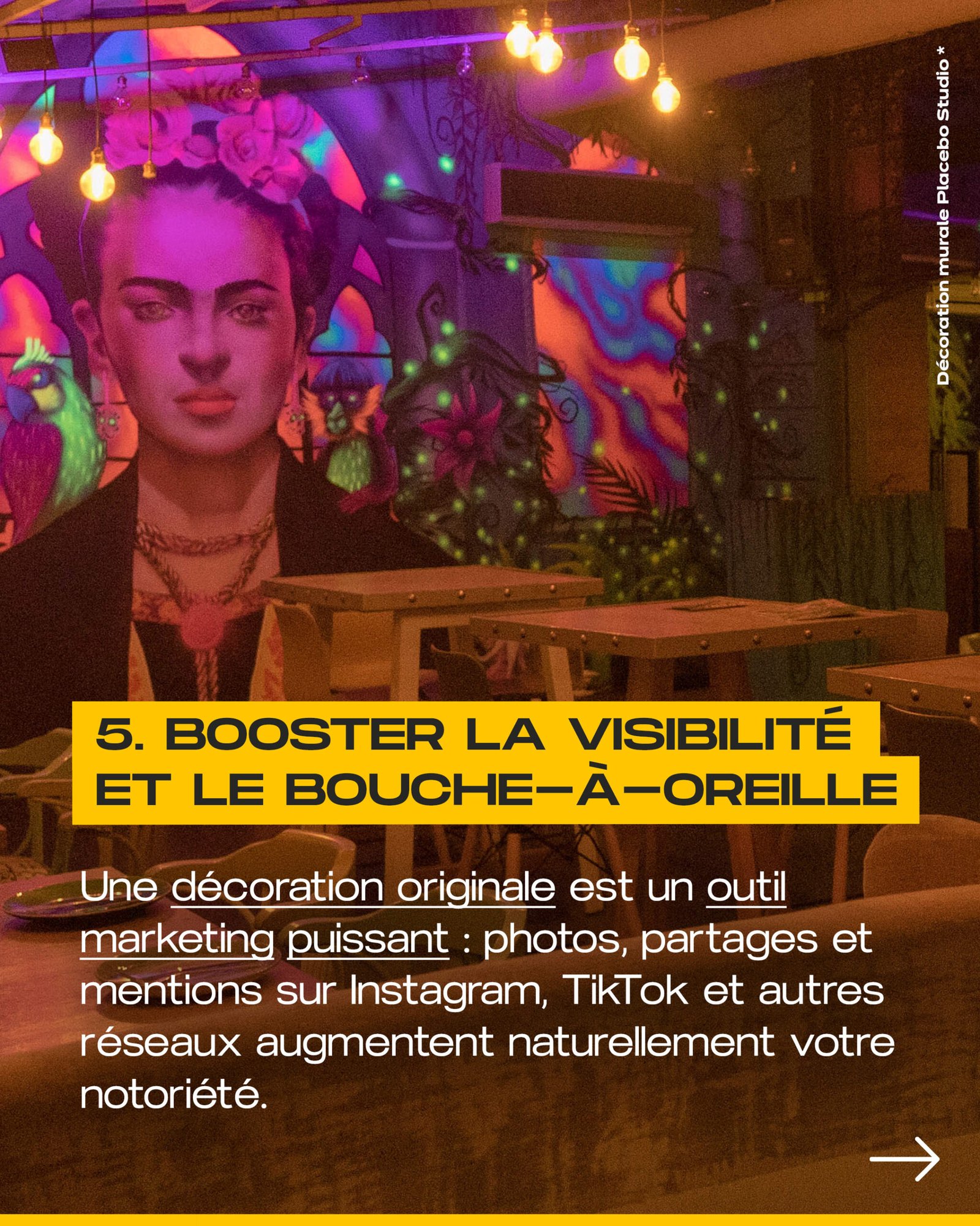 En boostant votre présence sur les réseaux sociaux grâce à une décoration artistique forte, vous développez une communication organique puissante, authentique et gratuite. L’art devient ainsi un levier marketing aussi esthétique qu’efficace.