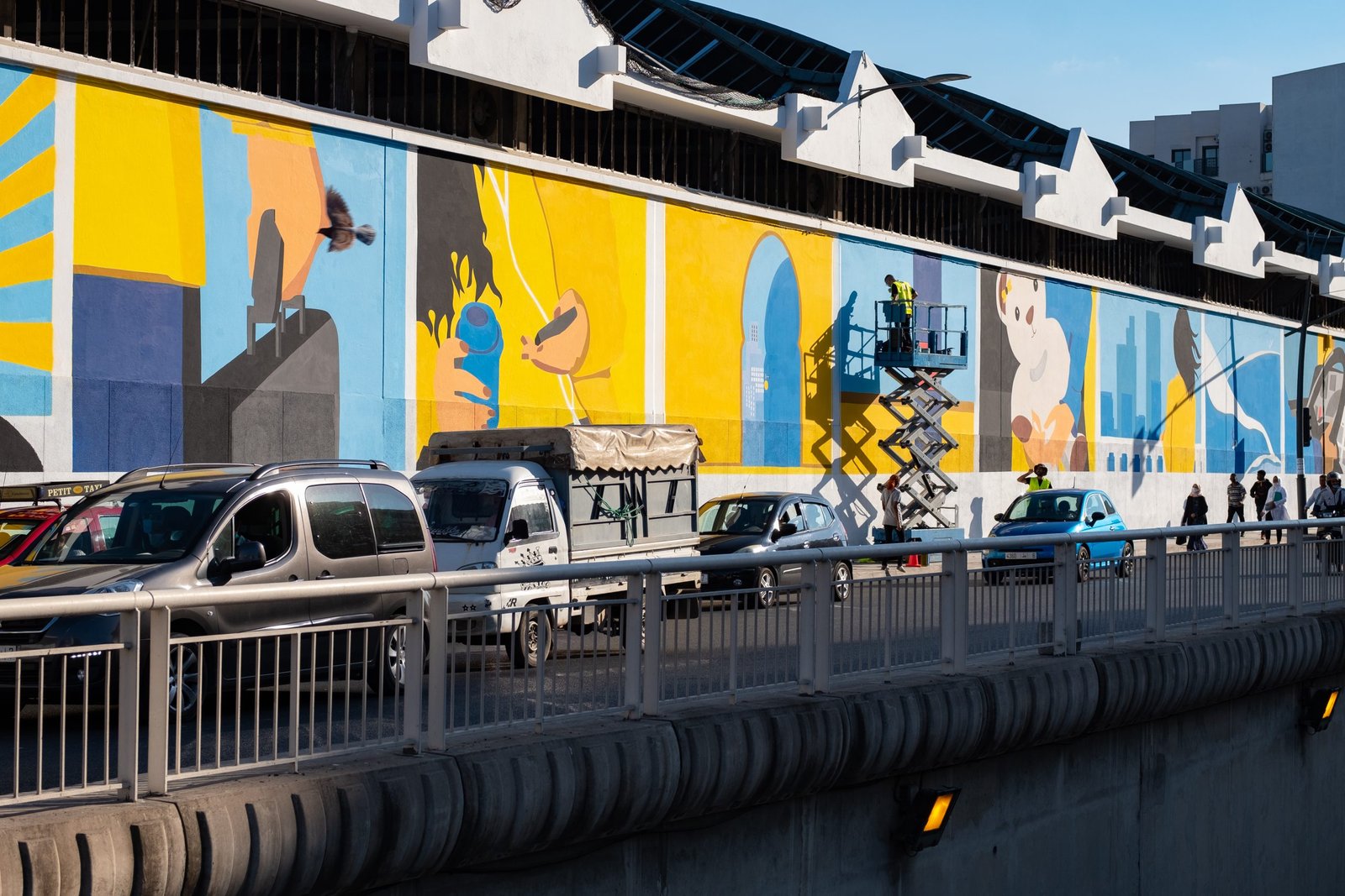 1 200 m² de créativité, 3 semaines de travail intense et des centaines de litres de peinture : c’est avec passion et détermination que Placebo Studio a relevé ce défi artistique d’envergure sur le boulevard Brahim Roudani, l’une des artères les plus emblématiques de Casablanca.