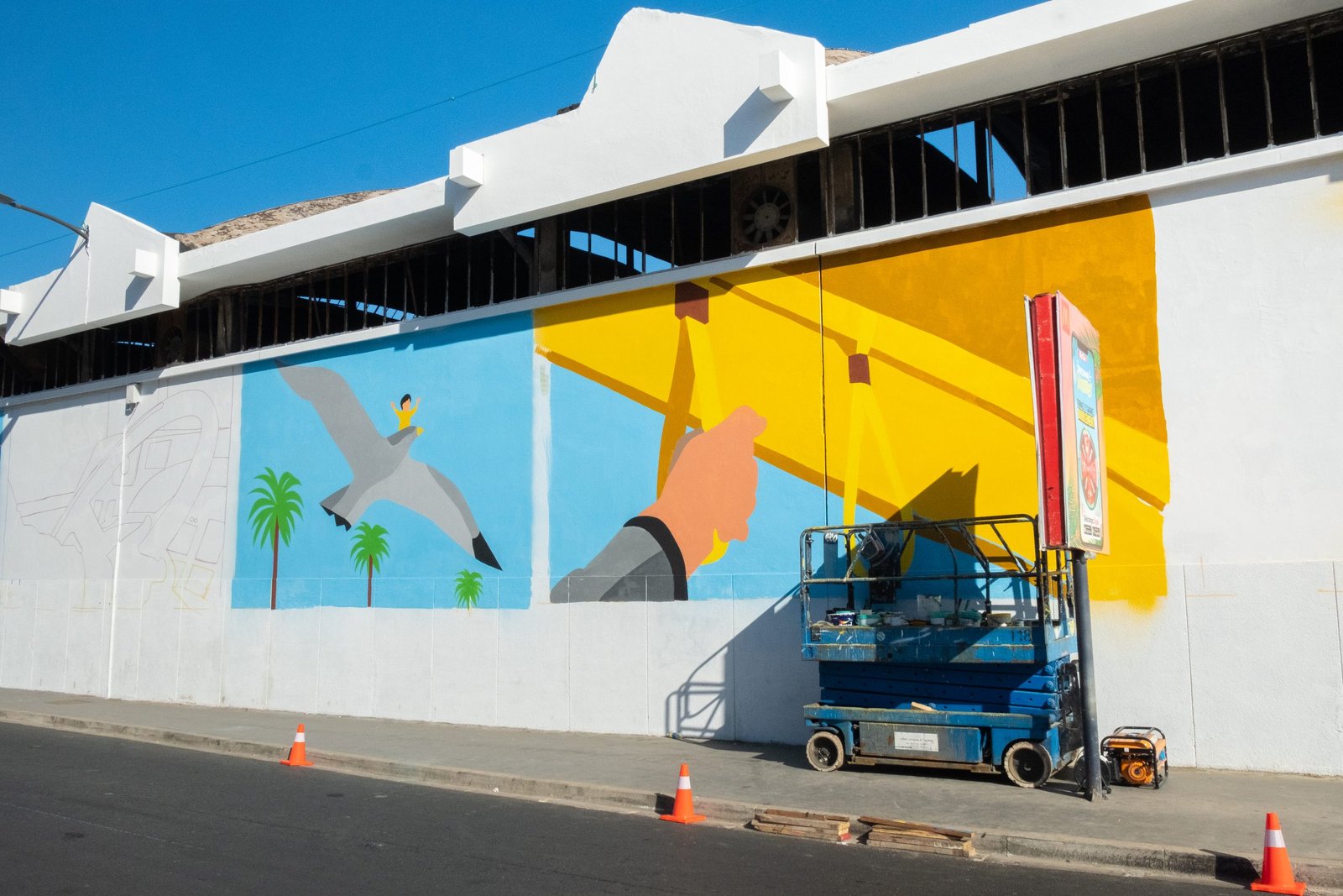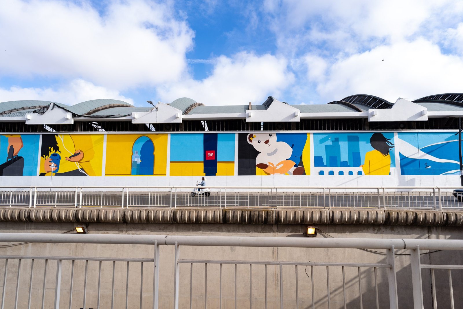 À travers une palette chromatique soigneusement sélectionnée pour s’harmoniser avec l’identité visuelle d’Alsa / Casa Bus, cette fresque met en lumière le quotidien des habitants :