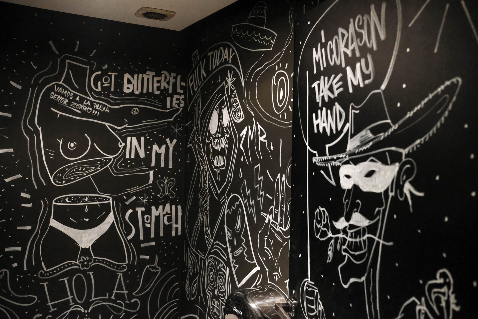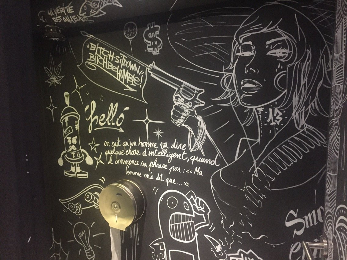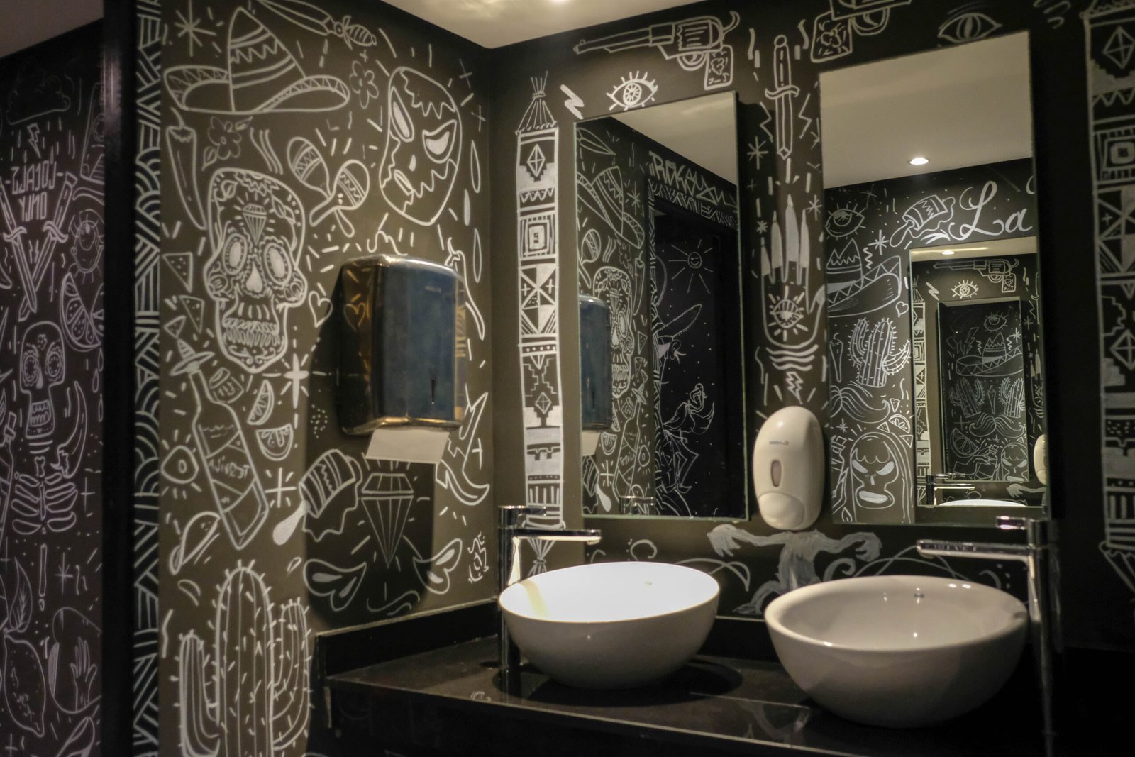 Entièrement recouvertes de dessins façon tatouage, jouant avec les miroirs, les lavabos et les volumes, ces espaces autrefois ignorés sont devenus de véritables galeries miniatures.
