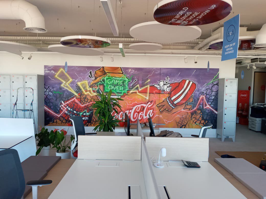 👉 Objectif : transformer des bureaux corporate en une galerie vivante où créativité, dynamisme et ouverture culturelle se conjuguent avec l’univers Coca-Cola.
