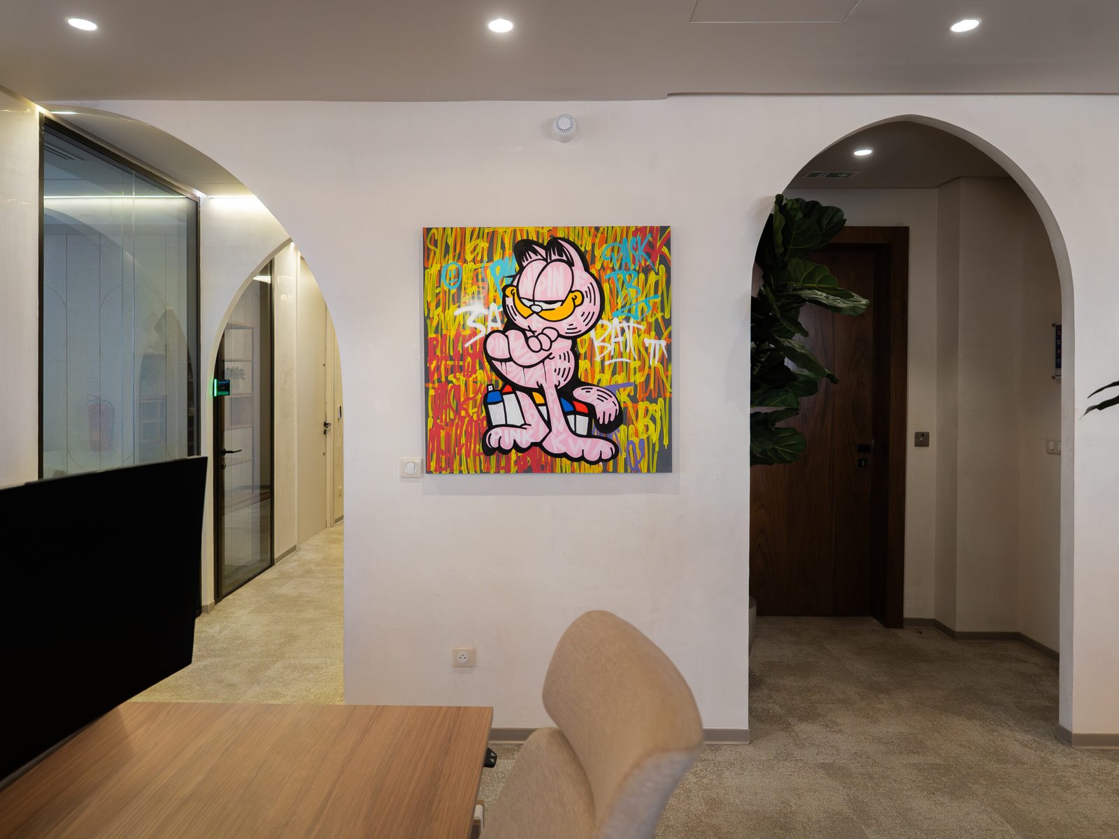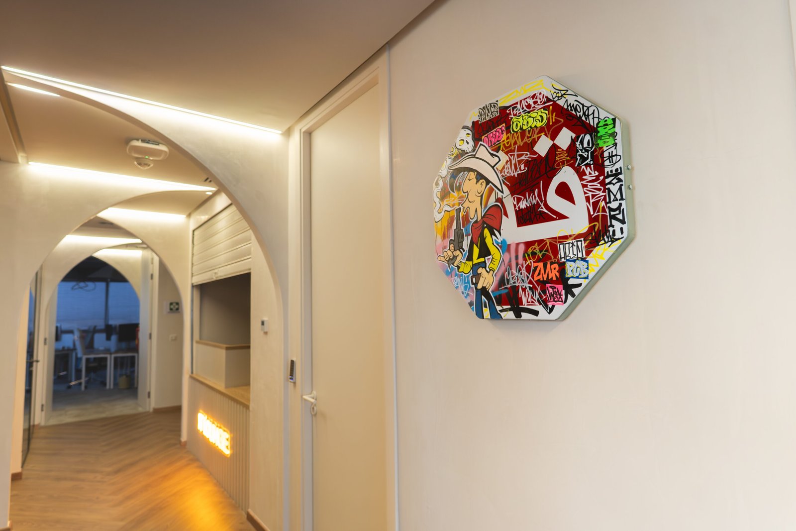 L’installation des œuvres a été pensée pour s’intégrer harmonieusement à la vie quotidienne des bureaux, sans perturber l’activité des équipes. Le déploiement s’est fait de manière discrète, mais son impact a été immédiat, entraînant une transformation visible de l’ambiance. Les couloirs se sont métamorphosés en de véritables galeries, portées par une explosion de couleurs, de créativité et d’énergie.
