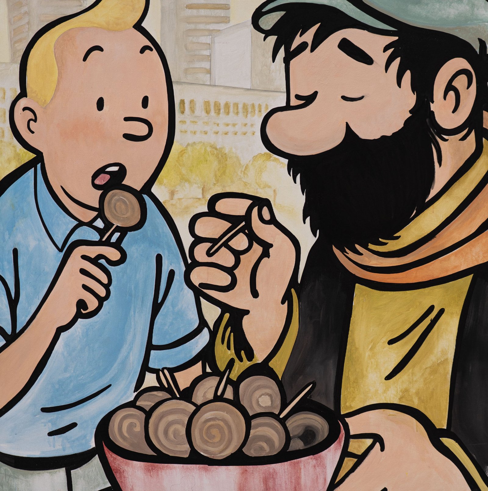 Un mélange de street art, abstraction, encrage, graffiti, pop art et aquarelle, selon l’univers des auteurs de BD choisis.