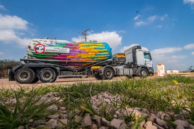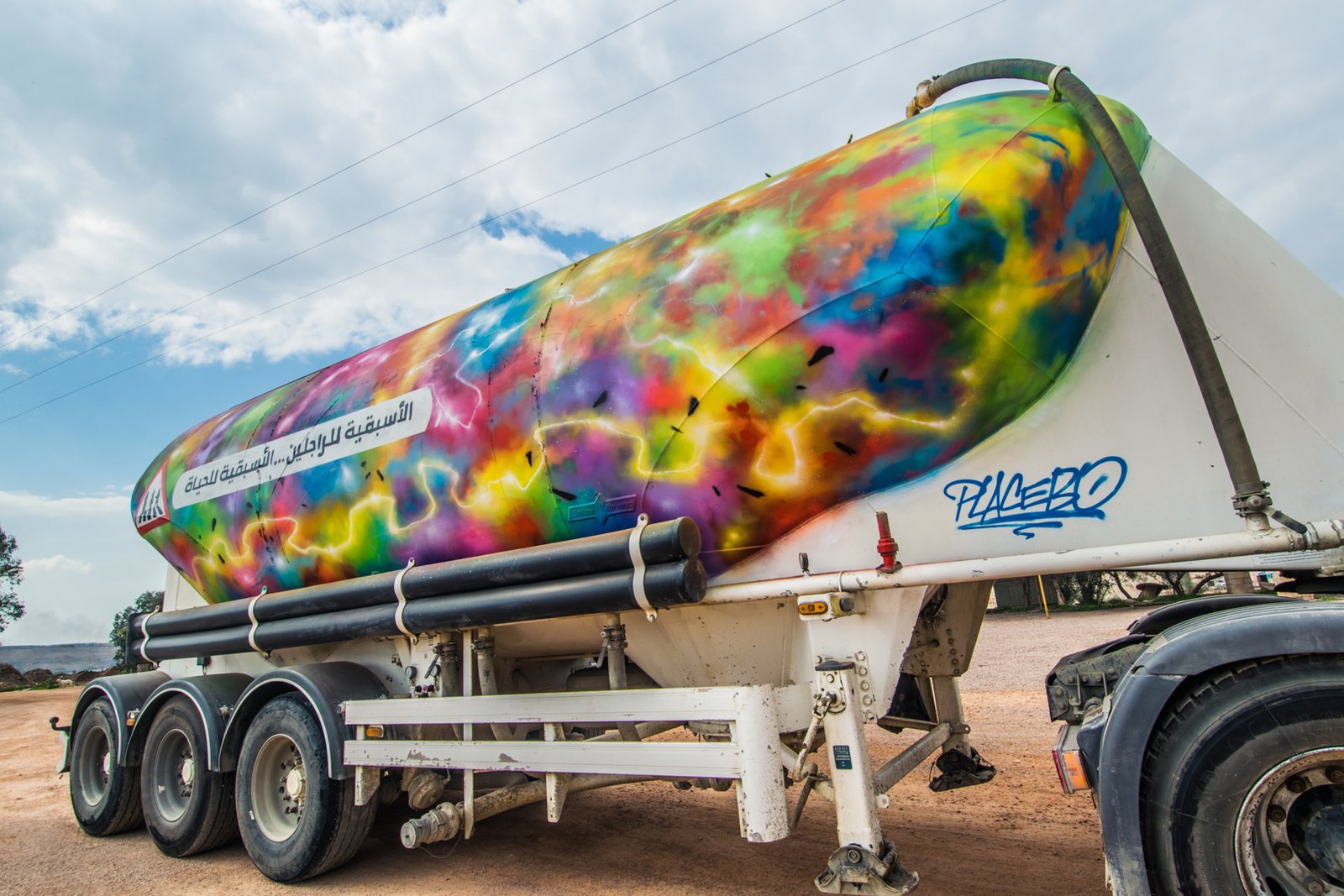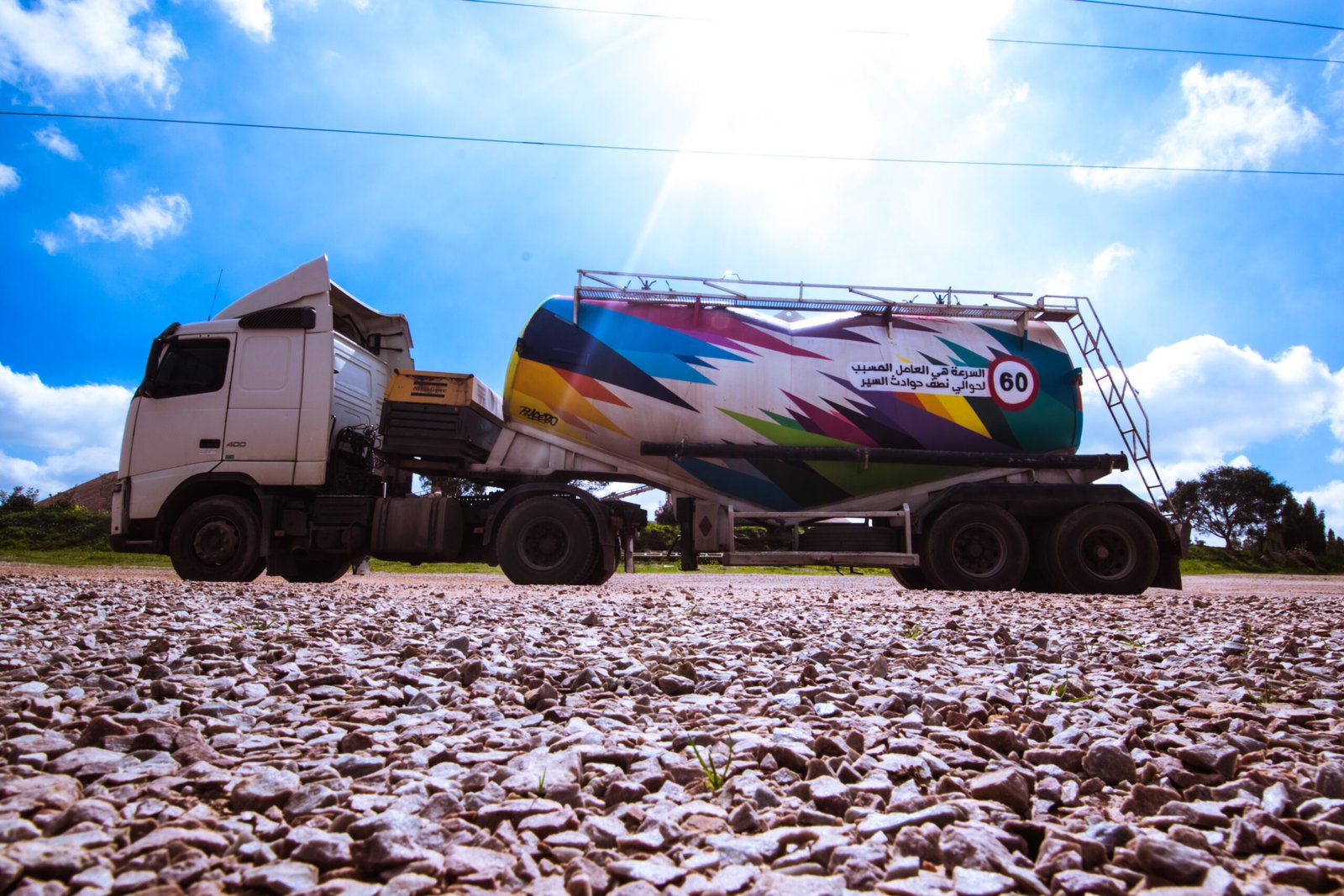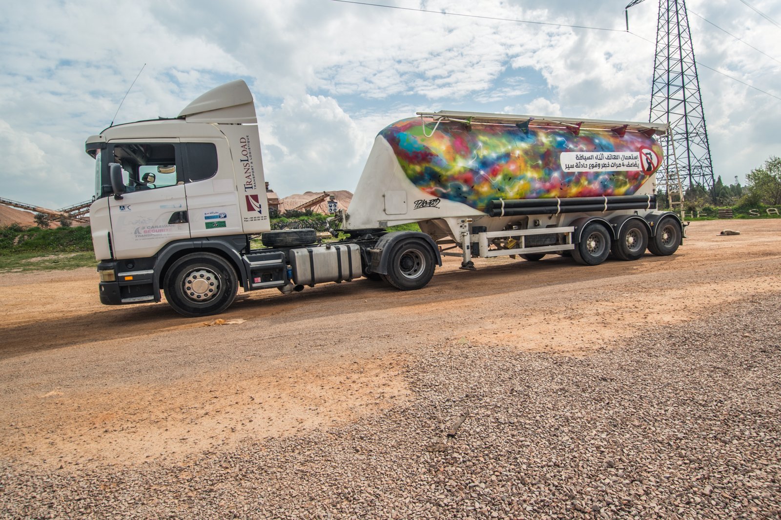 Le brief de Lafarge Maroc était clair : sortir du cadre, littéralement. L’idée était de véhiculer des messages simples mais percutants (“ne téléphonez pas au volant”, “respectez les distances de sécurité”, “attention aux piétons”, etc.) à travers des œuvres de street art peintes à la bombe directement sur les citernes des camions.
