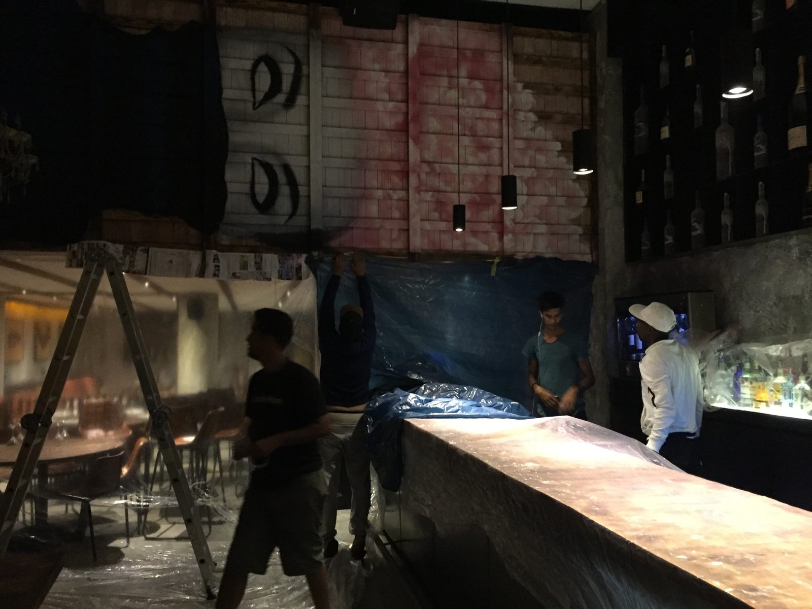 Le plus grand défi fut logistique : travail en hauteur, conditions nocturnes, coordination d’artisans et précision extrême sur mur texturé.