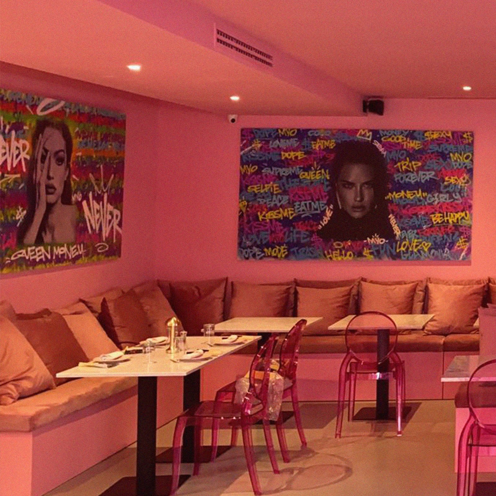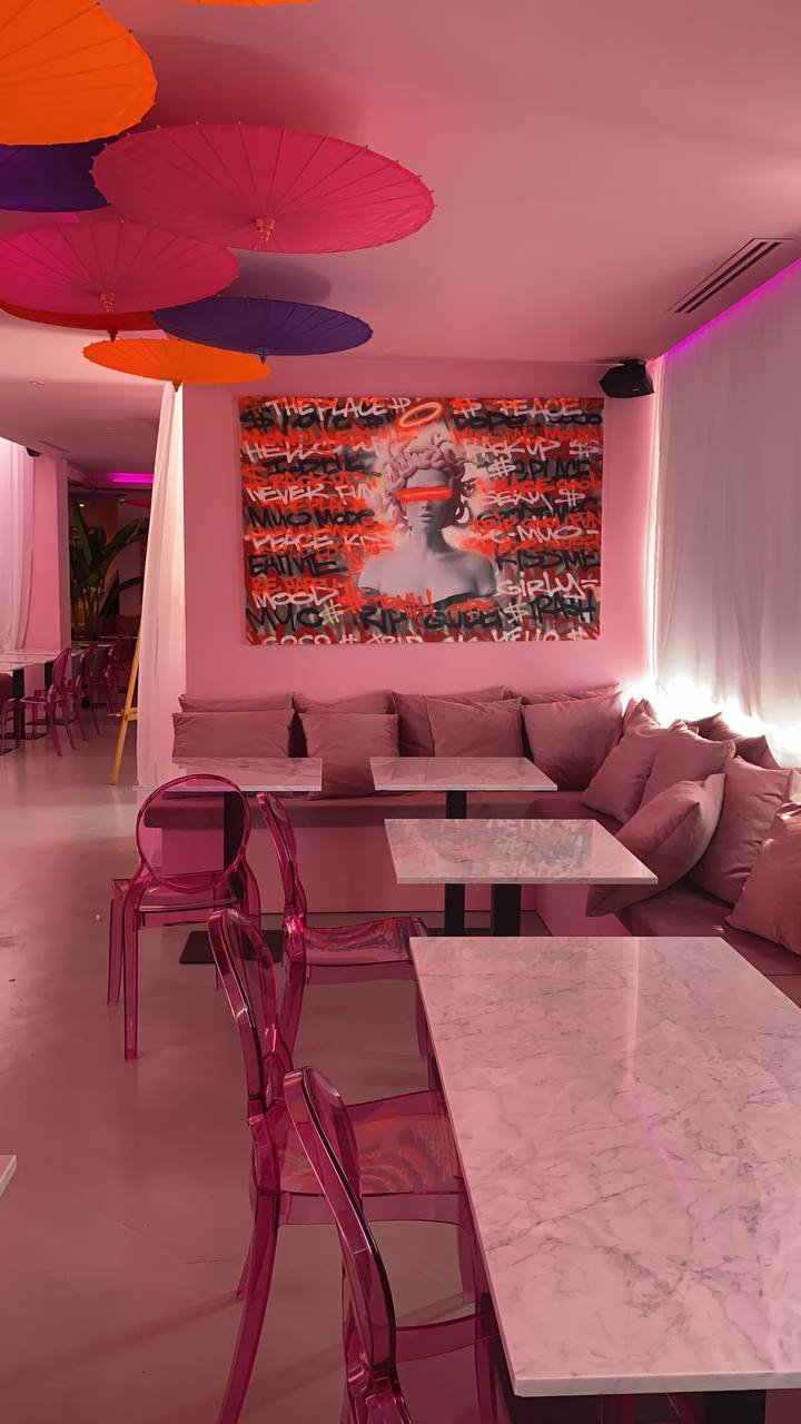 Ce restaurant flambant neuf, installé à deux pas de la corniche de Tanger, allait faire parler de lui. Et pour cause : tout y est rose. Un rose assumé, vibrant, décliné sous toutes ses formes. Le lieu se revendique “girly”, mais avec une touche street art, des références aux icônes pop, et un vrai parti pris esthétique. Franchement, on a tout de suite adoré l’idée.
