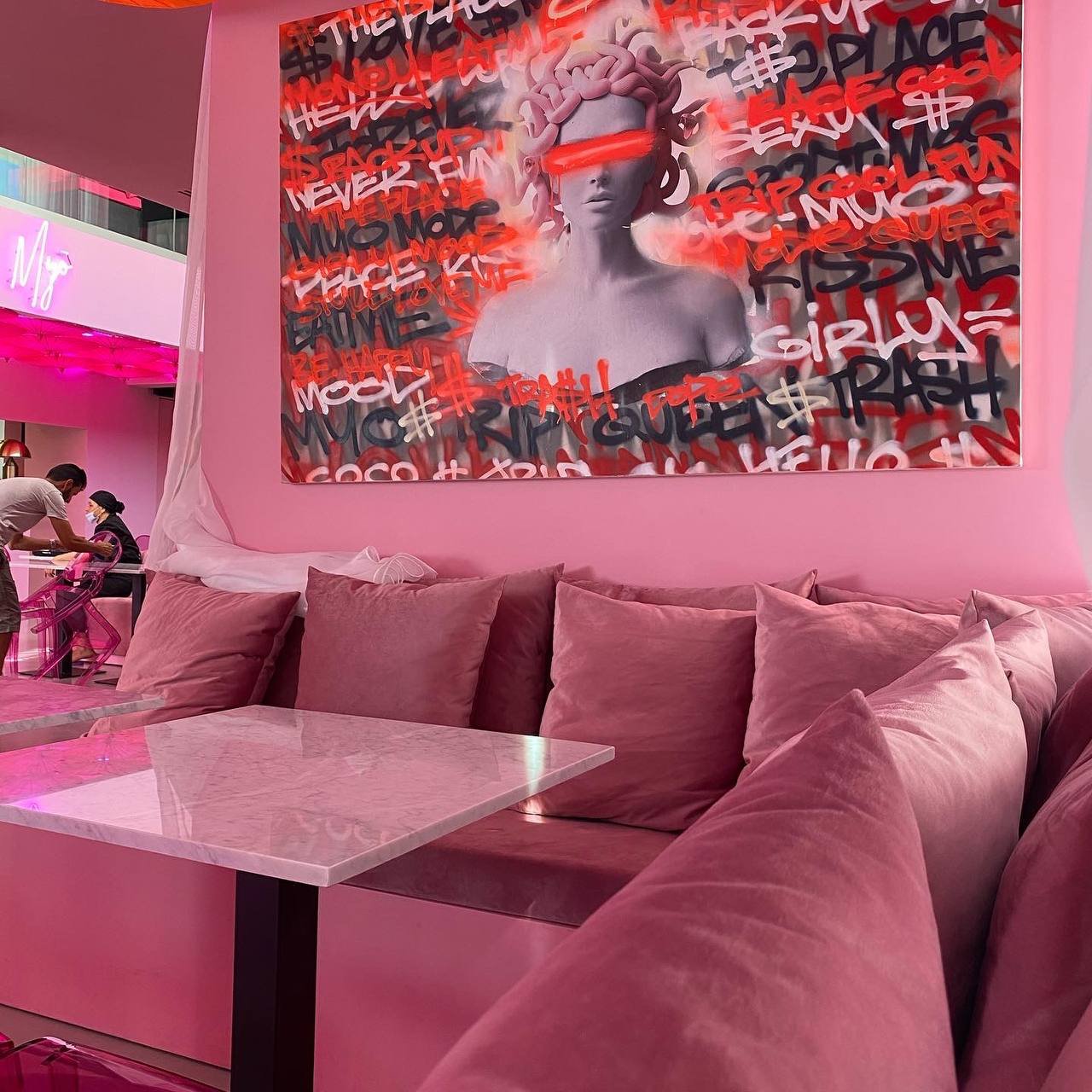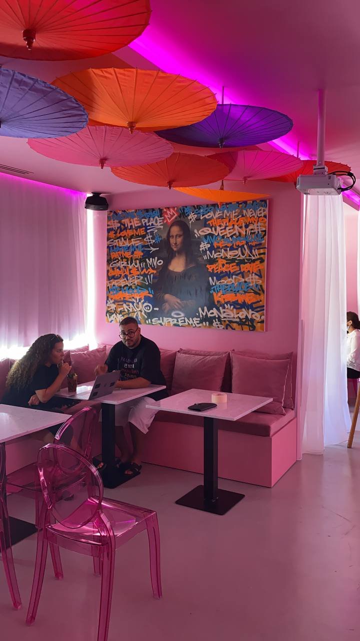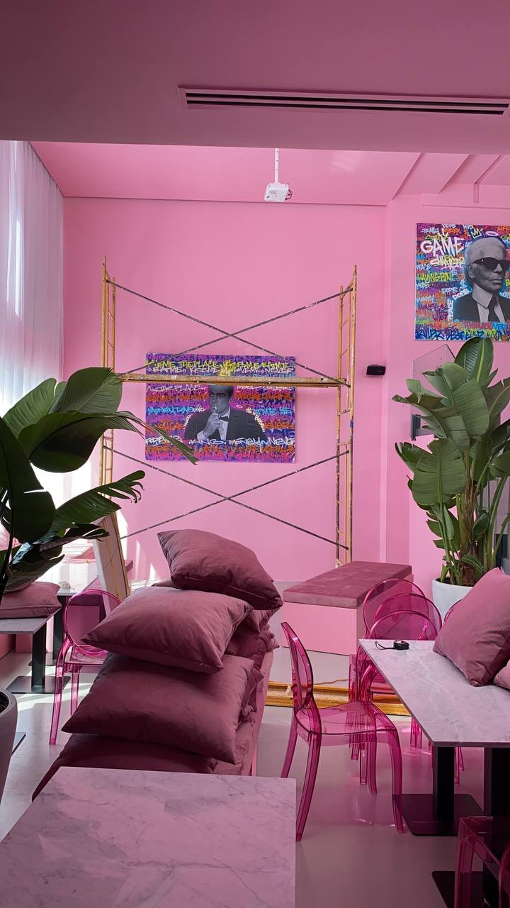 C’était un peu fou, mais on adore ce genre de défis. Travailler dans un décor 100 % rose, saturé de néons et de détails flashy, c’est aussi une expérience sensorielle. Et on ne s’en rend pas toujours compte, mais les couleurs influencent directement l’énergie d’un lieu.