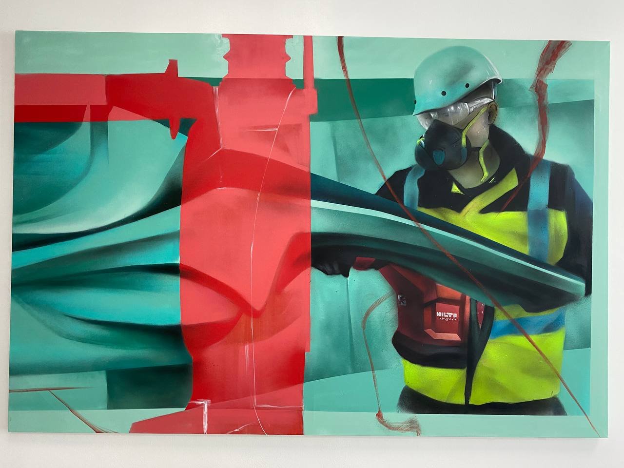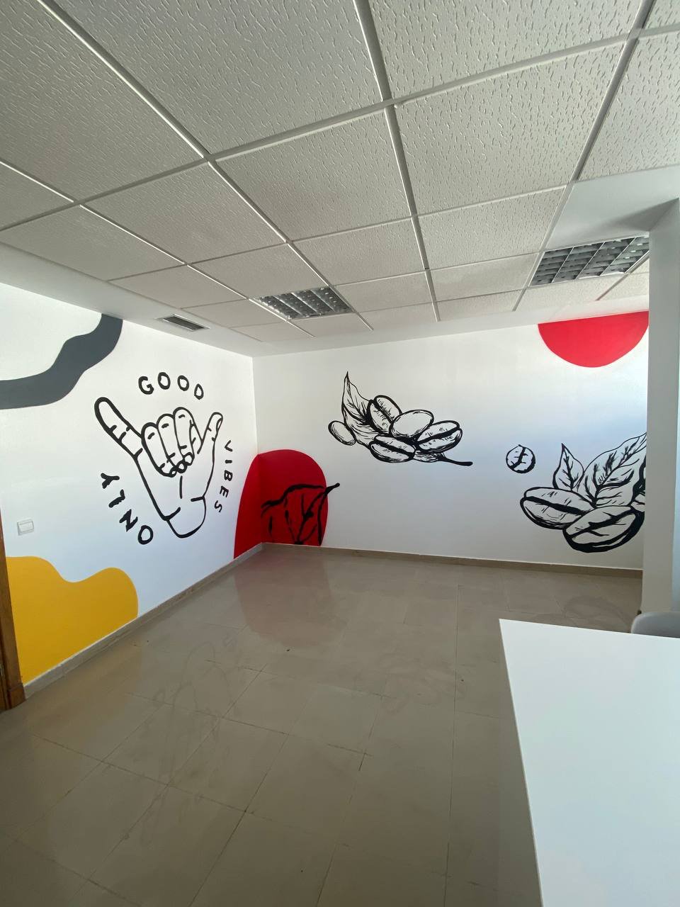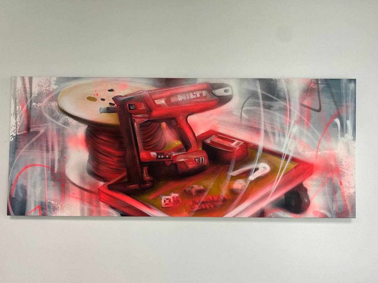 Cette fois-ci, l’objectif était de décorer plusieurs espaces avec des œuvres murales et des tableaux d’art contemporain, en réinterprétant l’univers de la construction et des outils de chantier à travers le prisme du street art et du graffiti.