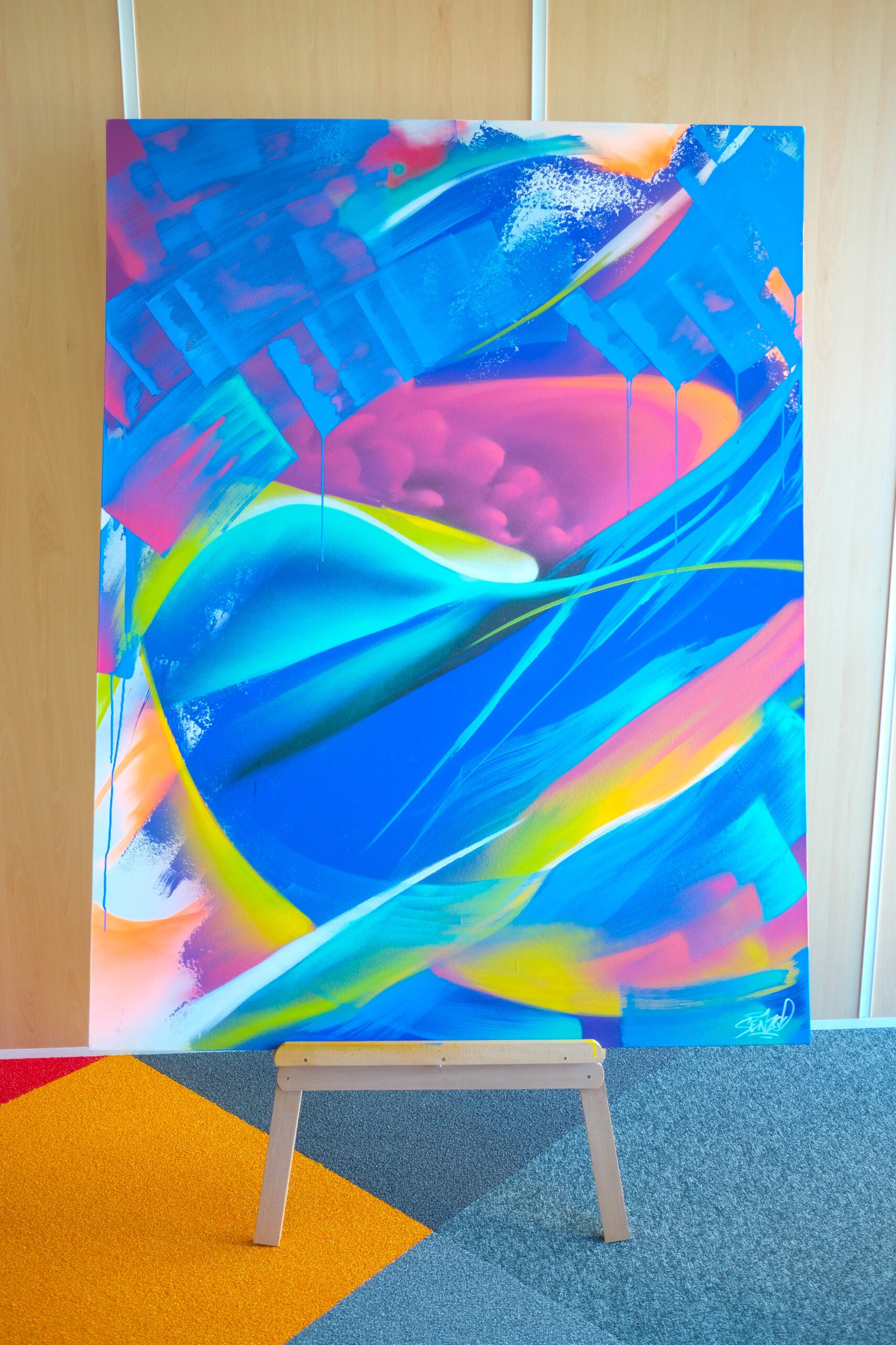 Plutôt qu’un simple divertissement, cette intervention était pensée comme une immersion artistique en temps réel, créant à la fois une expérience visuelle vivante et une collection de tableaux originaux pour les locaux de l’entreprise.
