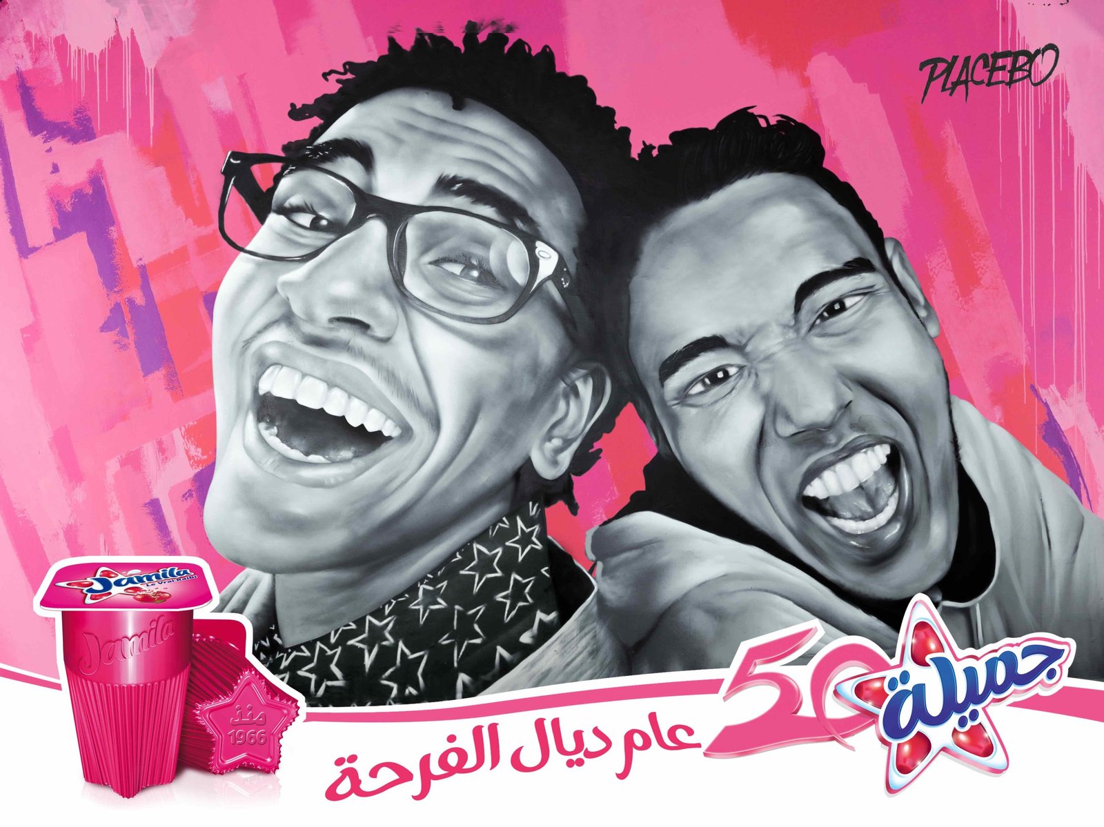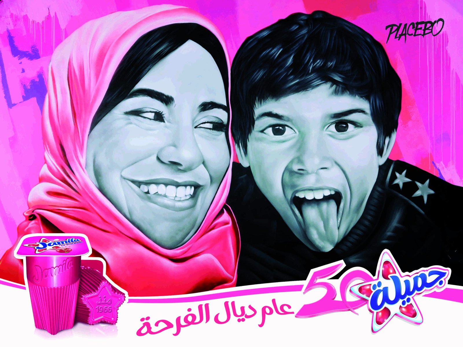 En 2014, Danone Centrale Laitière nous a contactés chez Placebo Studio pour imaginer une campagne marketing unique à l’occasion des 50 ans de RAIBI Jamila, le célèbre yaourt à boire emblématique du Maroc depuis les années 60. Cette marque rose, synonyme de nostalgie et d’enfance, méritait une opération à la hauteur de son histoire et de son ancrage culturel.