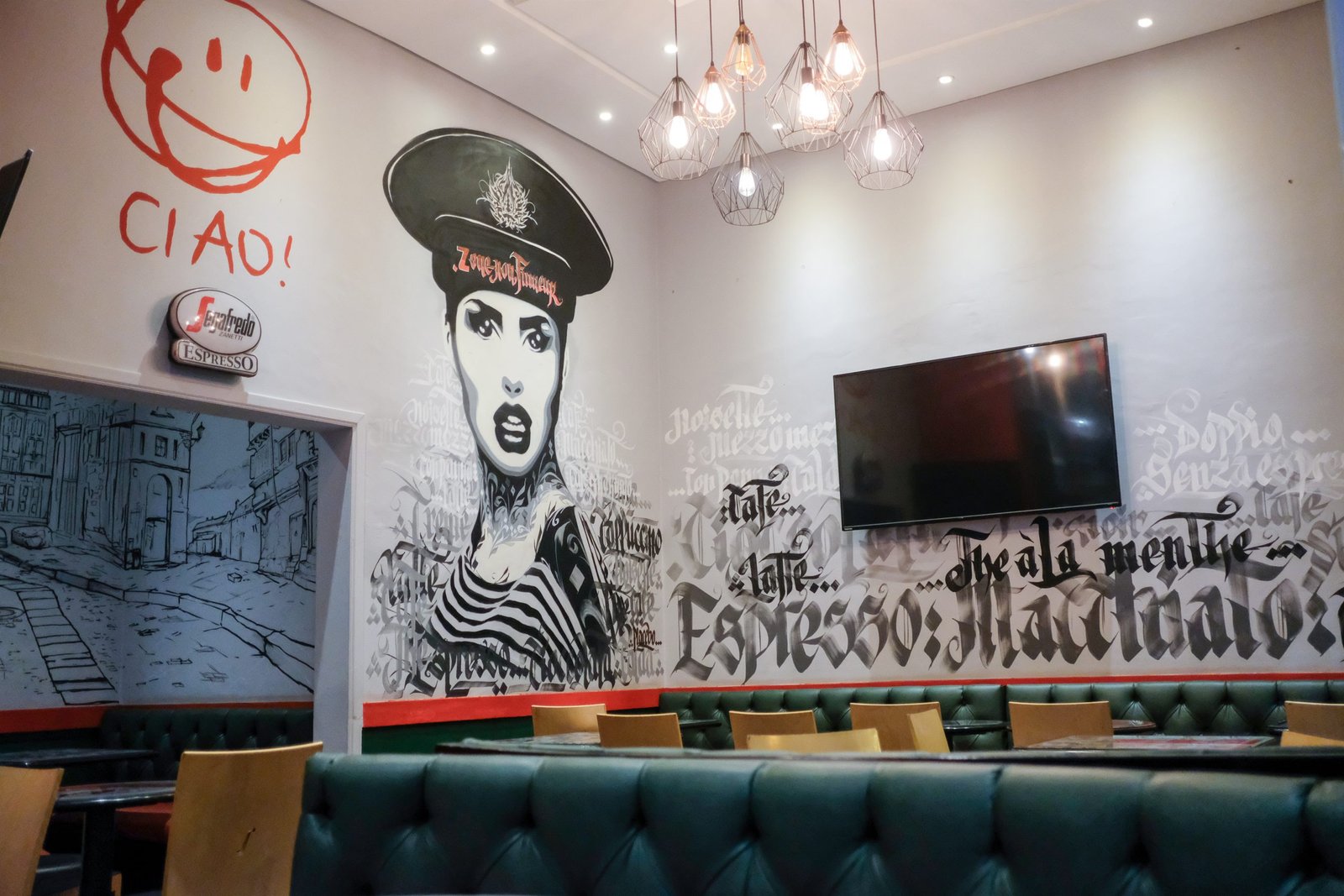 Le restaurant Segafredo, situé sur le boulevard de Casablanca, est une véritable institution pour les amateurs de café et de cuisine italienne. En 2018, l’équipe Placebo a eu l’opportunité de repenser totalement sa décoration pour lui insuffler une atmosphère italienne raffinée et élégante. Ce projet artistique a été une aventure passionnante, mêlant calligraphie, illusions d’optique et symboles emblématiques de l’Italie.