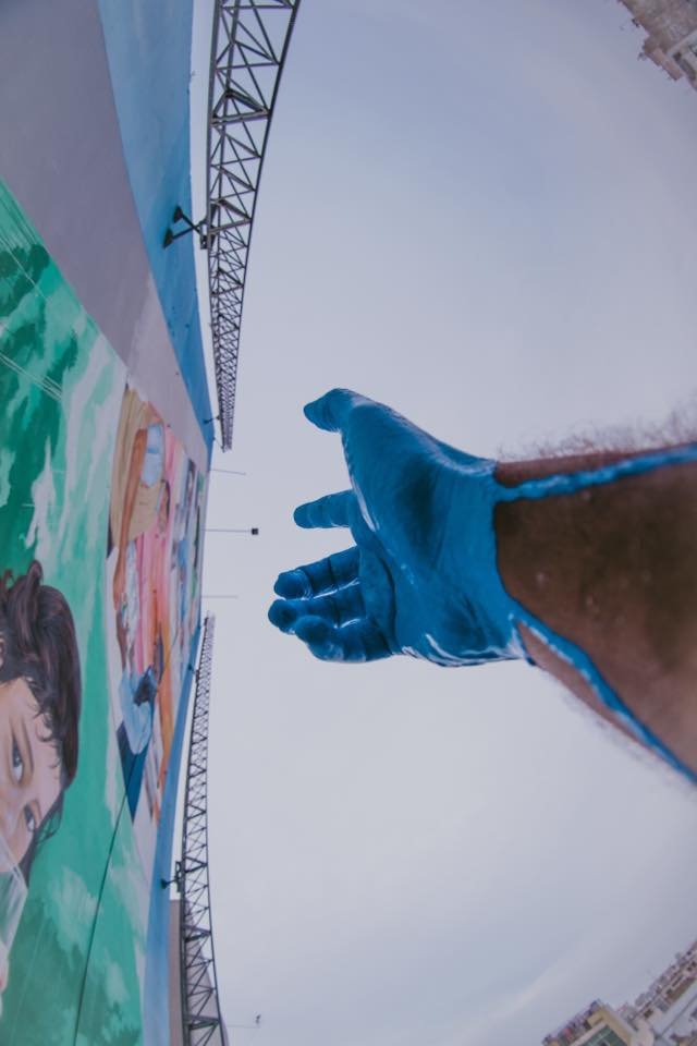 Ce qui nous a profondément touchés dans ce projet, c’est la manière dont les gens se sont approprié la fresque, jour après jour pendant deux semaines. Les familles du quartier, les jeunes, les enfants, les gardiens de voiture… Ils venaient nous voir régulièrement, parfois même plusieurs fois dans la journée. On sentait une vraie curiosité, un respect, presque une fierté locale de voir une œuvre monumentale se créer sous leurs yeux.