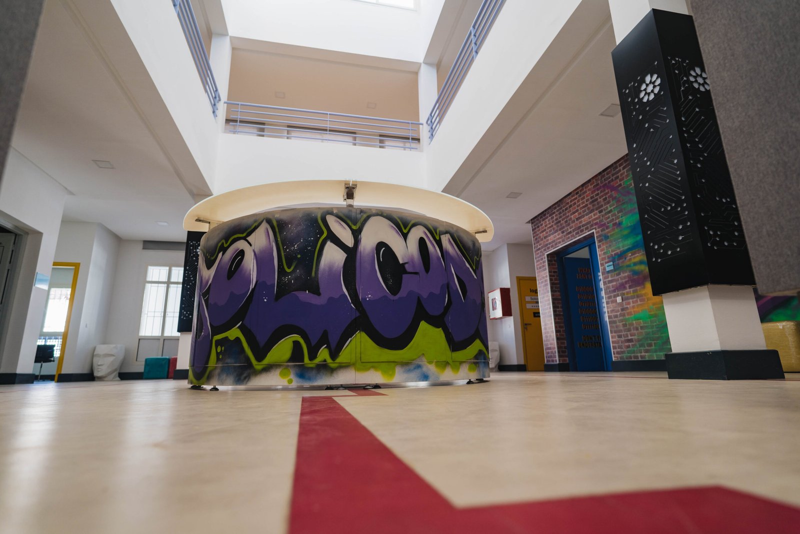 Quand le street art se met au service de l’éducation et de l’inclusion sociale, le résultat peut être aussi puissant qu’inattendu. C’est exactement ce qu’a accompli Placebo Studio à Tanger, avec la décoration complète de l’école Solicode, une structure de formation gratuite destinée à des jeunes en situation de précarité. Ce projet, réalisé pour le compte de l’OCP Maroc, incarne parfaitement la mission de Placebo Studio : transformer les lieux d’étude en lieux d’expression, de motivation et d’émancipation.