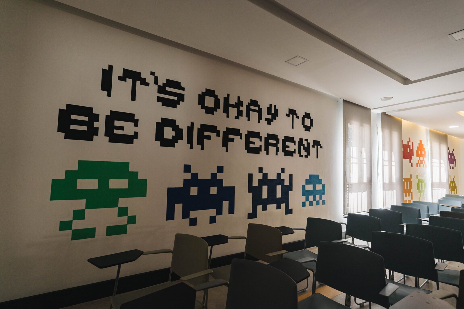 Cette école a été imaginée comme un tremplin pour les jeunes marocains éloignés de l’emploi. En partenariat avec la Fondation Mohammed V pour la Solidarité et l’Initiative Nationale pour le Développement Humain, elle forme gratuitement aux métiers du coding, du développement web, et des technologies du futur. Et dans cet environnement, le visuel compte autant que le contenu pédagogique.