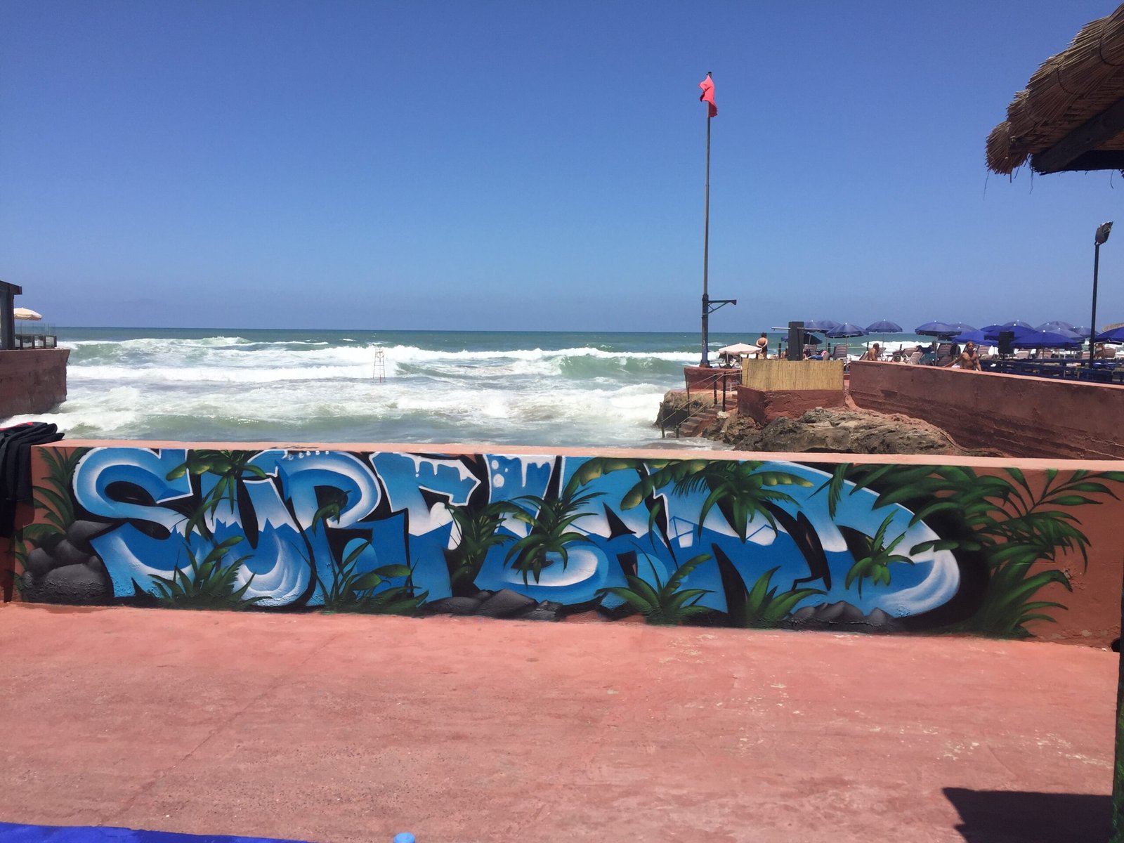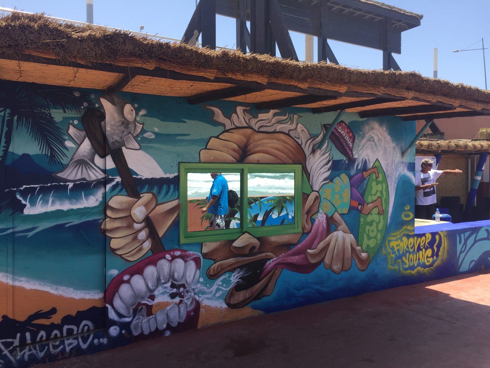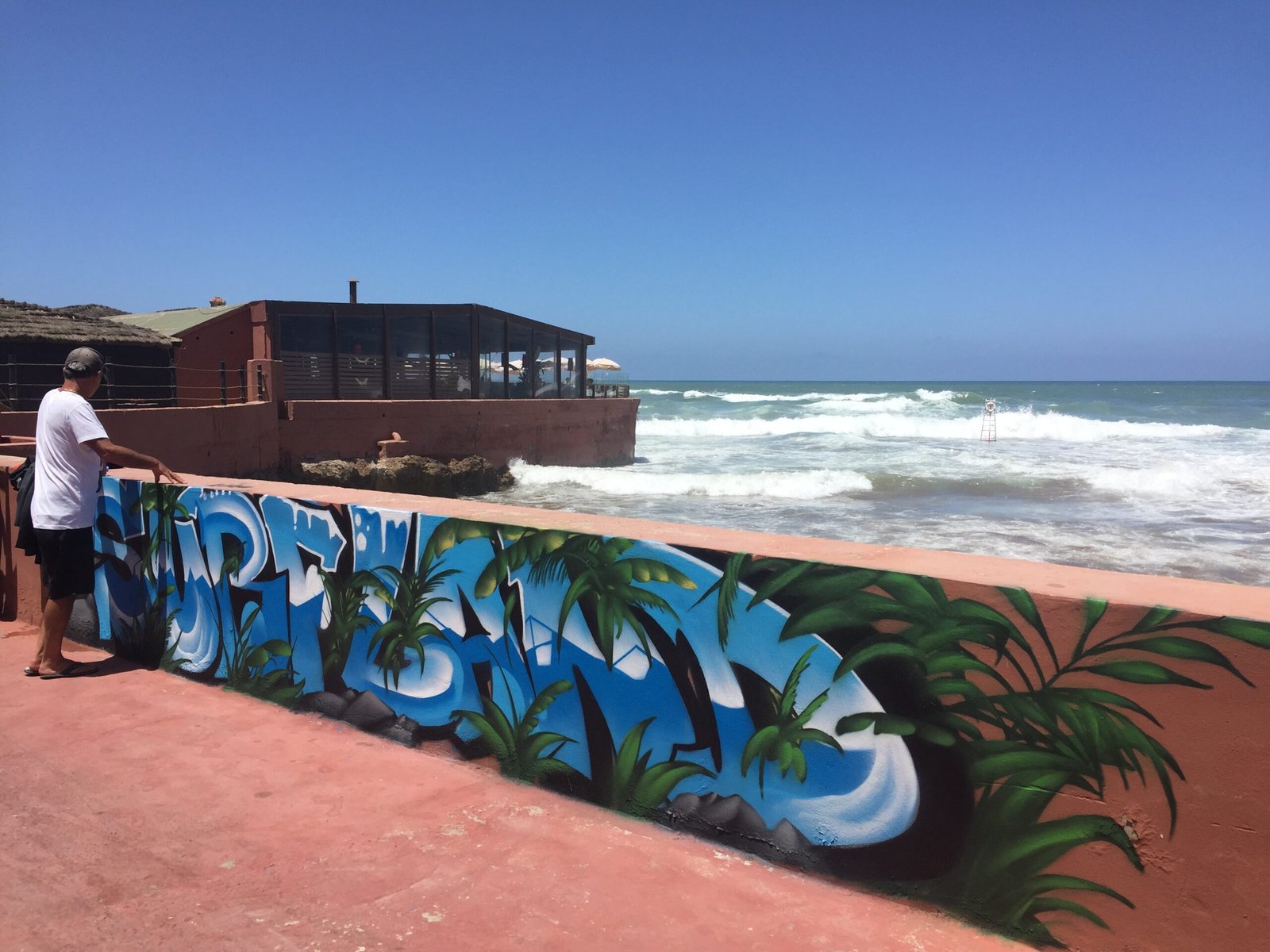 Deux jours seulement ont suffi pour peindre la fresque, dans une ambiance détendue et inspirante, face à l’océan.